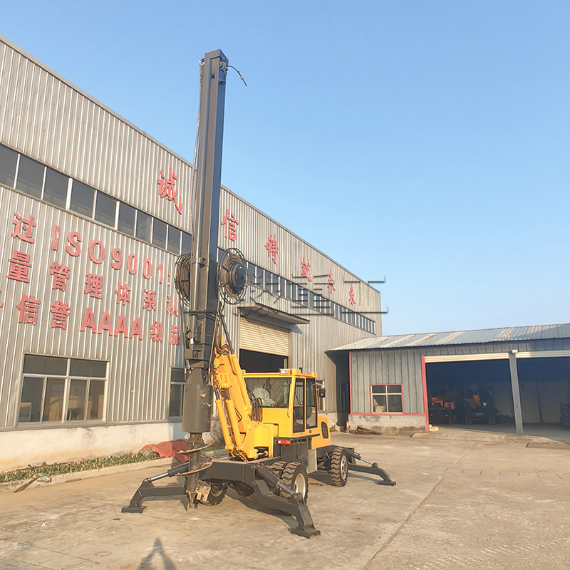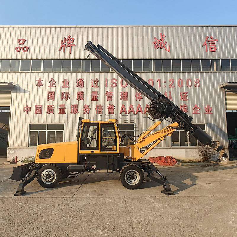 轮式方杆旋挖钻机是一种在工程施工中常用的钻孔设备,其核心特征在于采用方形钻杆传递扭矩和轴向力,具有独特的结构和性能特点,适用于多种复杂工况。方形结构的导向性更强,可减少钻孔过程中的偏斜,提高成孔精度,适合对垂直度要求较高的工程(如桩基施工)。钻杆与动力头的连接方式更紧密,扭矩损失小,能将动力更直接地传递到钻头,提升钻进效率,尤其在复杂地质条件下优势明显。